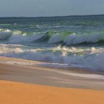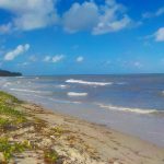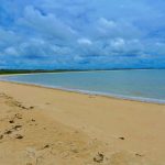 O mar é calmo, bom para banho de mar e rio, fica a 6 km do centro, conta também com um camping a beira mar, voltado mais para trailers e motohomes.