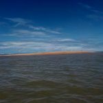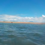 É uma enseada com parte da praia voltada para o rio e a outra voltada para o mar.
