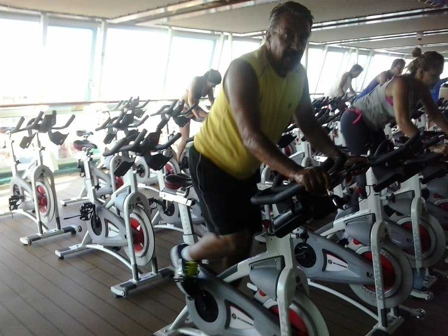O tema do navio era “Fitness” e uma belíssima academia de ginástica foi montada, com varias aulas, para todos os gostos, campo de golfe e uma parede para escalar. Uma pista de 1,6 mts na cobertura para pratica de corrida e caminhada.