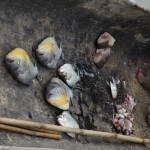 Aonde se observa a Morpho helenor, ovos, lagarta e casulos.