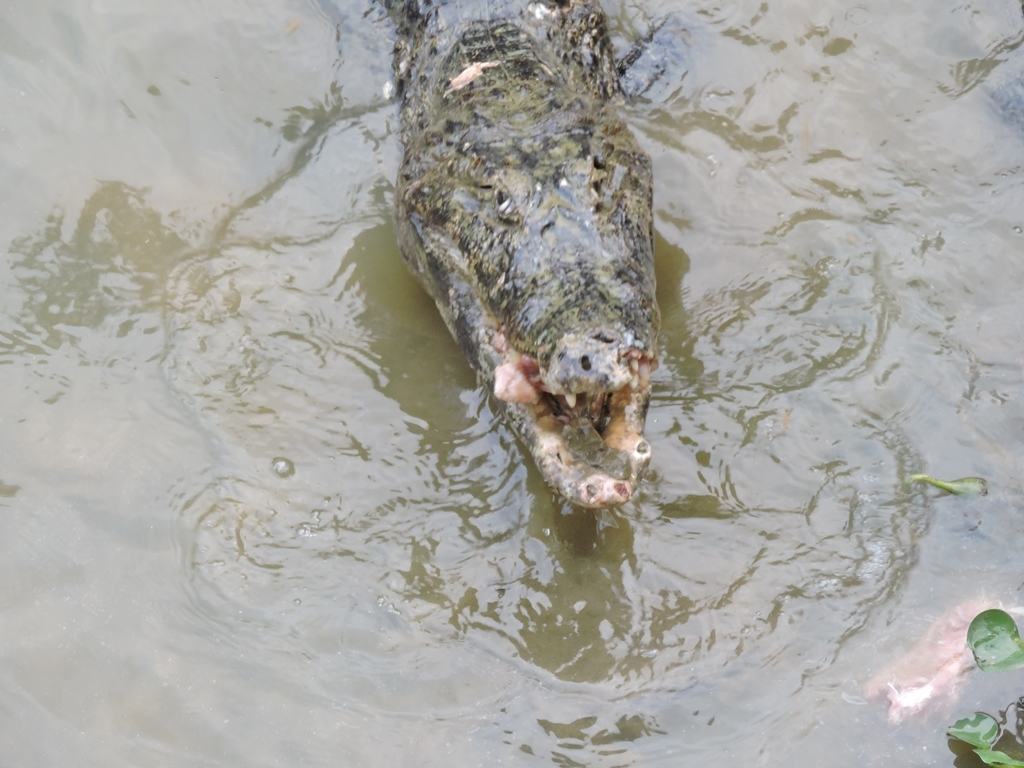 Foto que tiramos de um jacaré as margens do rio, no Pantanal - SESC Porto Cercado
