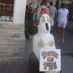 A 70 KM de Recife, localizada no município de Ipojuca, piscinas naturais repleta de peixes coloridos e jangadas, ficamos na Praia do Centro, mar calmo com grande quantidade de algas, e andamos pela cidade para conhecer as lojas de artesanato, tudo gira em torno das galinhas. Merece realmente uma visita mais longa, voltaremos com certeza.