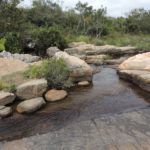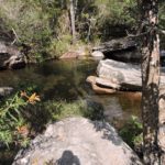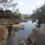 Nesse local existe cachoeiras com poços para banho e um delicioso “escorrega” para se divertir, cobra-se uma taxa de R$ 3,00 para entrar.