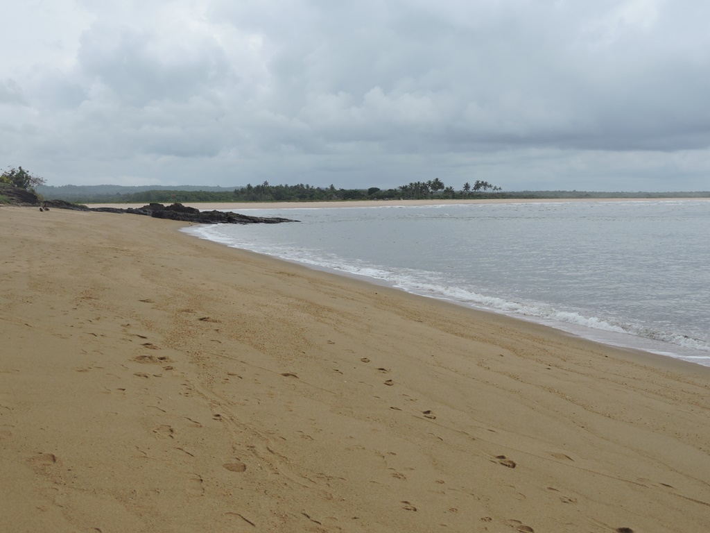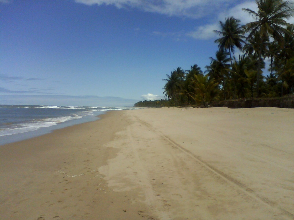 6 km de praia de areia fina e branca e de ondas fortes, quase deserta, para ter acesso é preciso atravessar o Rio de Contas que leva 5 minutos.